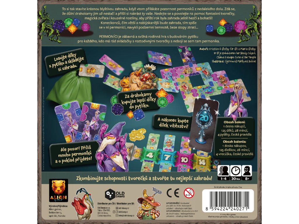 Hra kombinuje oblíbené mechanismy bag buildingu, tile placementu a push-your-luck. V každém kole si taháte dílky z pytlíku a přikládáte je do svého dolu tak, abyste propojili co nejvíce krystalů stejné barvy a získali co nejvíce peněz. Jenže pozor – jakmile vytáhnete šestého permoníka, vaše kolo končí a výdělek se snižuje.