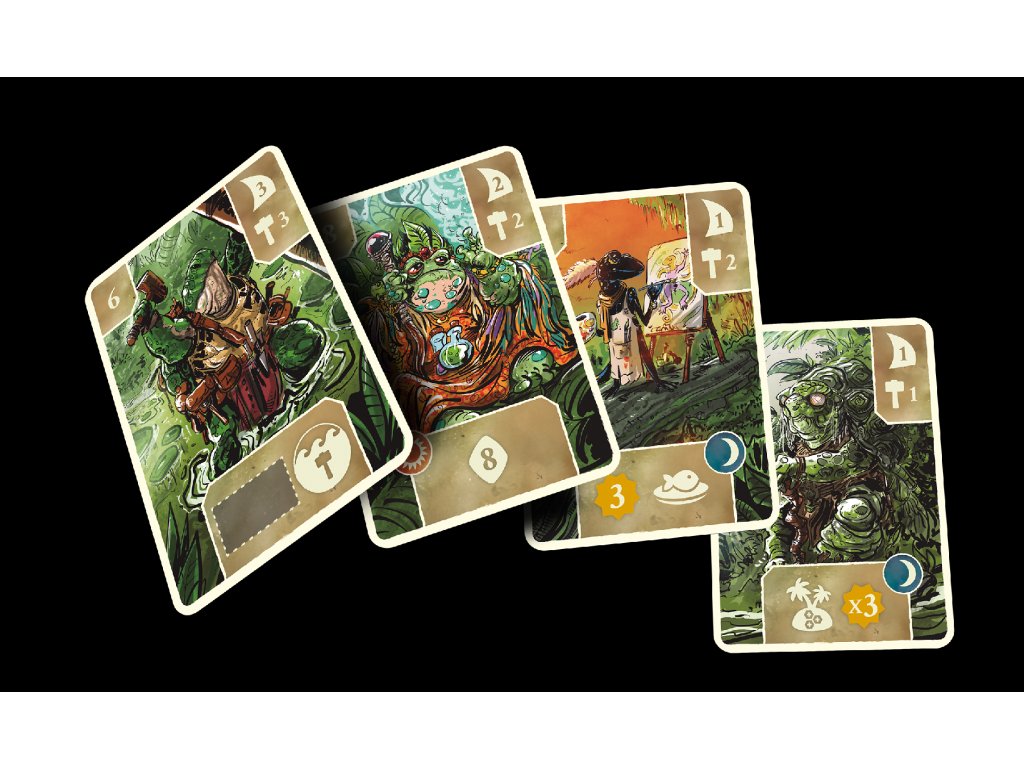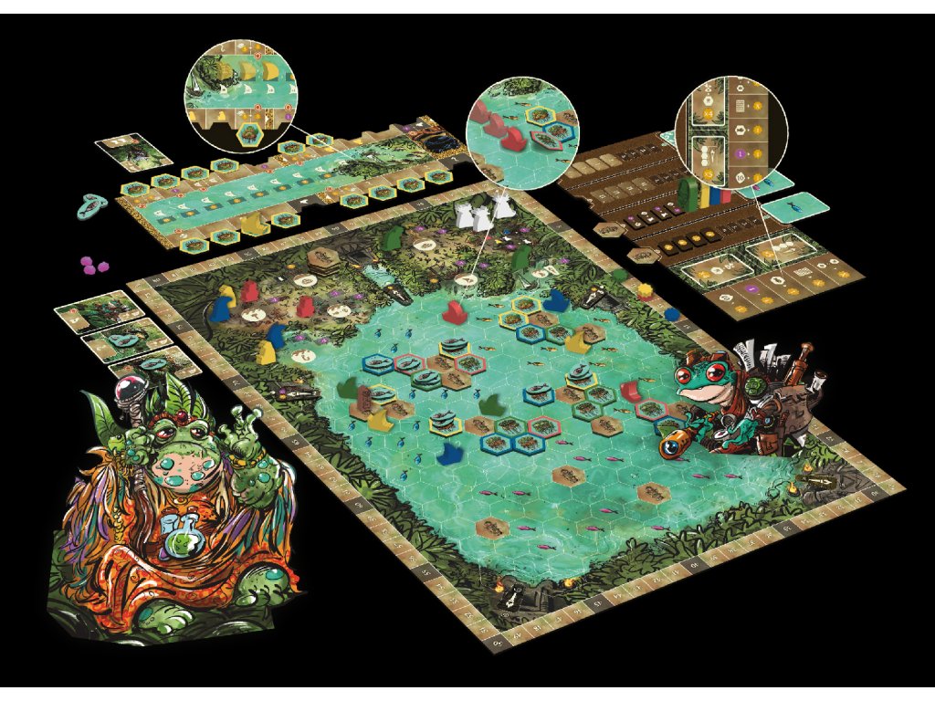 V Posvátné bažině zakládají klany nové osady, plují mezi ostrovy a snaží se získat co nejvíce vítězných bodů. Herní plán tvoří síť ostrovů se svatyněmi, které ovlivňují bodování a vytvářejí přirozená centra zájmu.